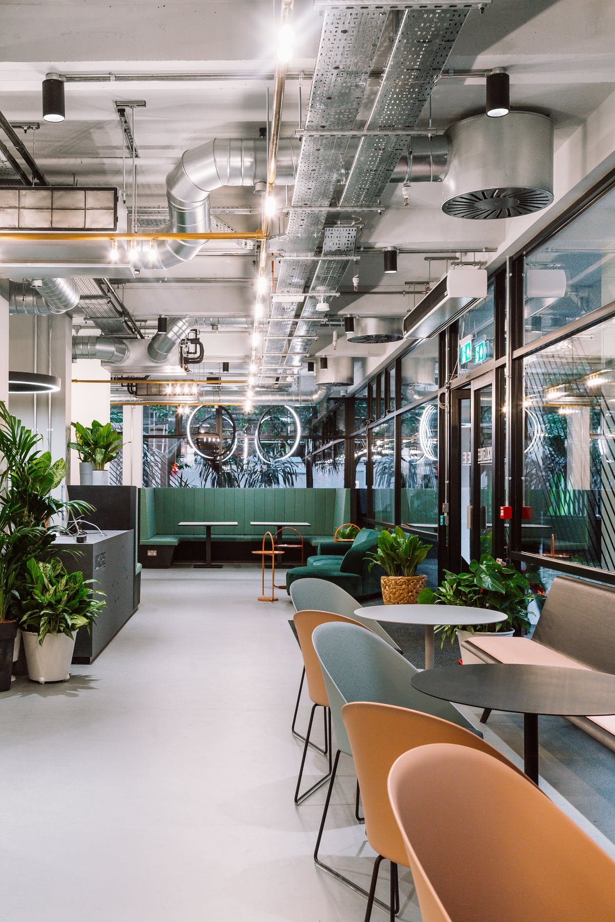 The spaces vary in style and include exposed brickwork, full-length glazing, high ceilings and access to private terraces. The smart communal entrance provides the ideal space to welcome clients and colleagues or hold informal meetings.