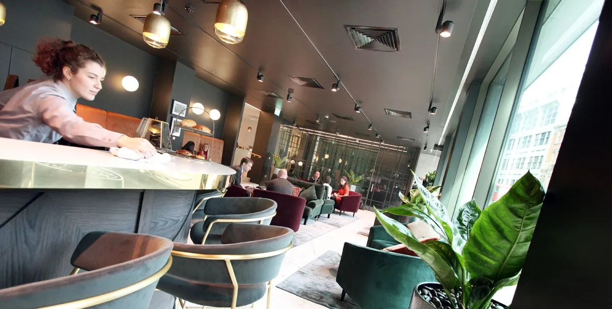 🌟 Enter 150 Minories and you’re immediately greeted with the magnificent, brand-new reception lounge and cafe bar. The coworking space is a thriving hub of activity for clients, and the barista-served coffee bar ☕ is the perfect place to meet guests without the need to leave the building. Everything is finished to a first-class standard with some delightful touches throughout.