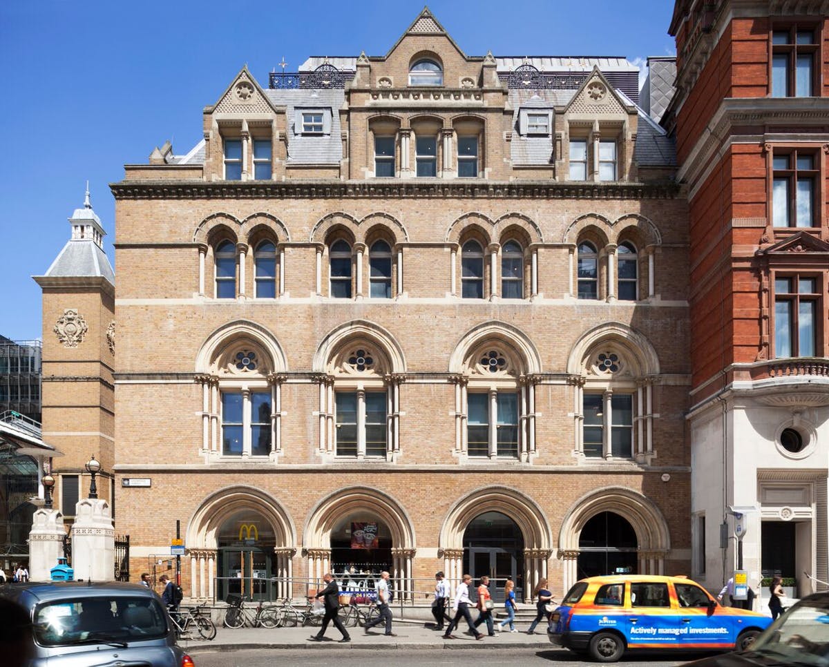 50 Liverpool Street, EC2, is a brilliant example of grand architecture that has survived two world wars. Liverpool Street Station is a bustling commuter hub with excellent underground and national rail transport links. This office has a unique design, with a mix of classic and contemporary features. The original arched windows are preserved, creating an abundance of natural light and views over the concourse of Liverpool Street Station below.