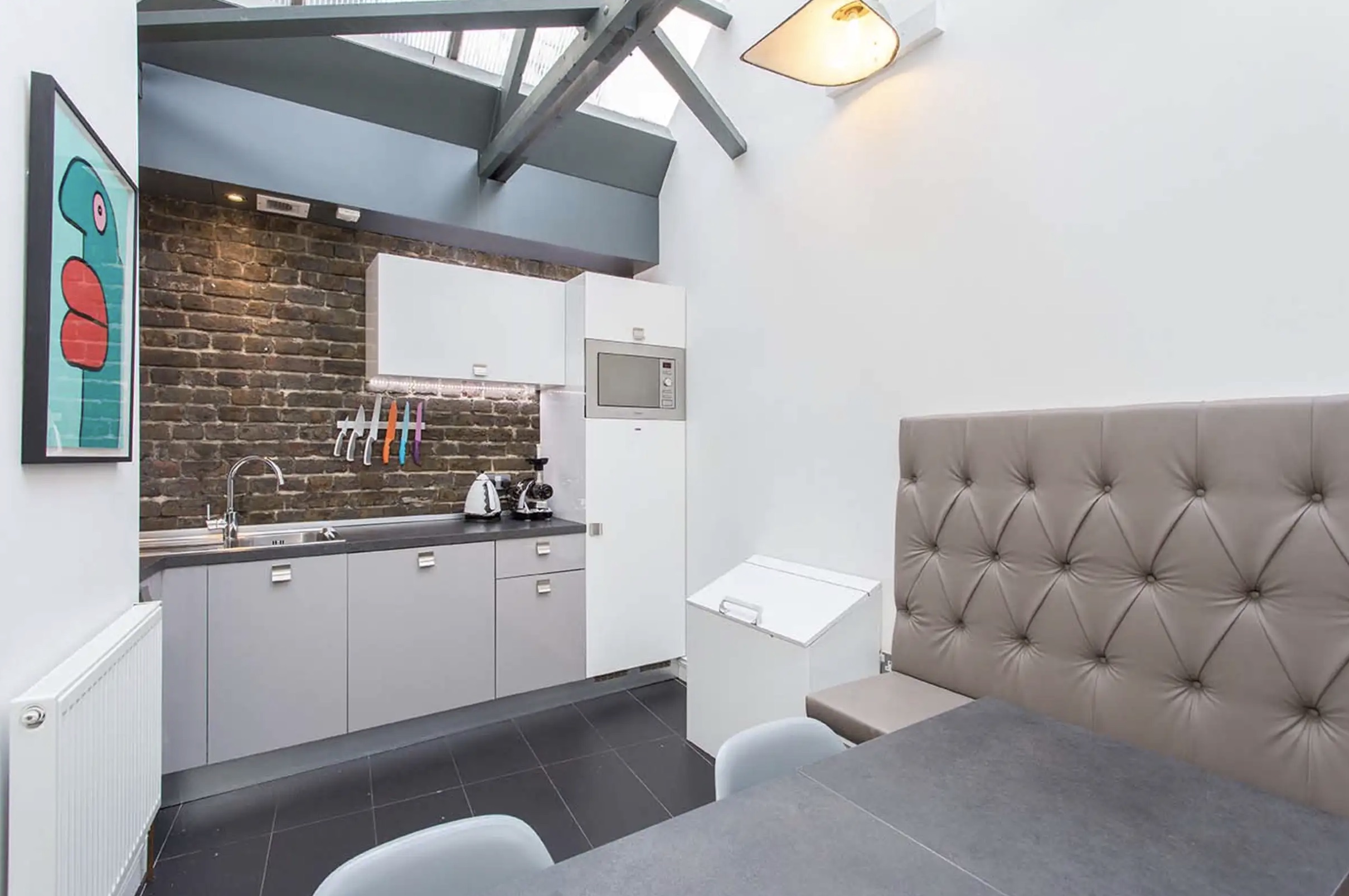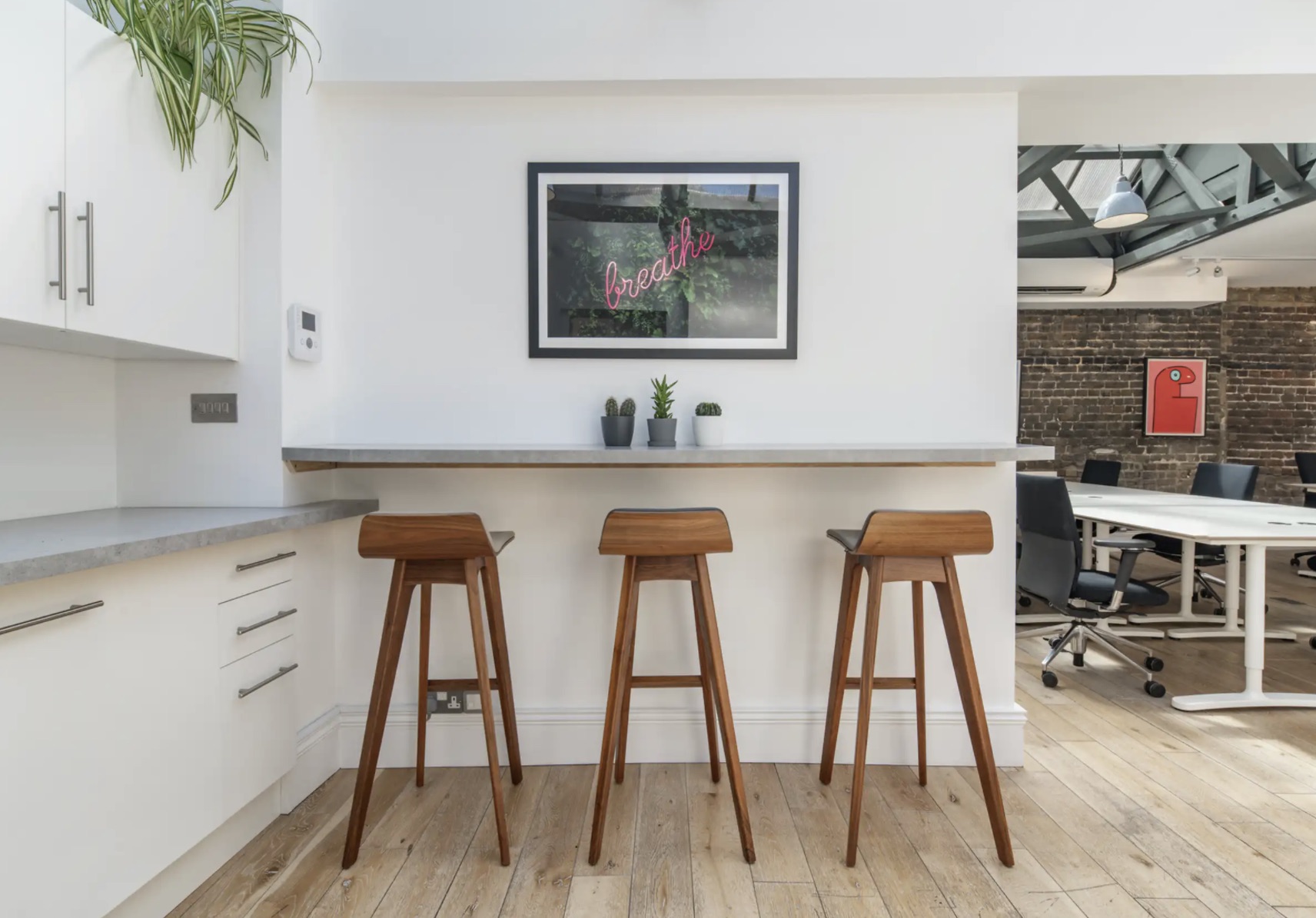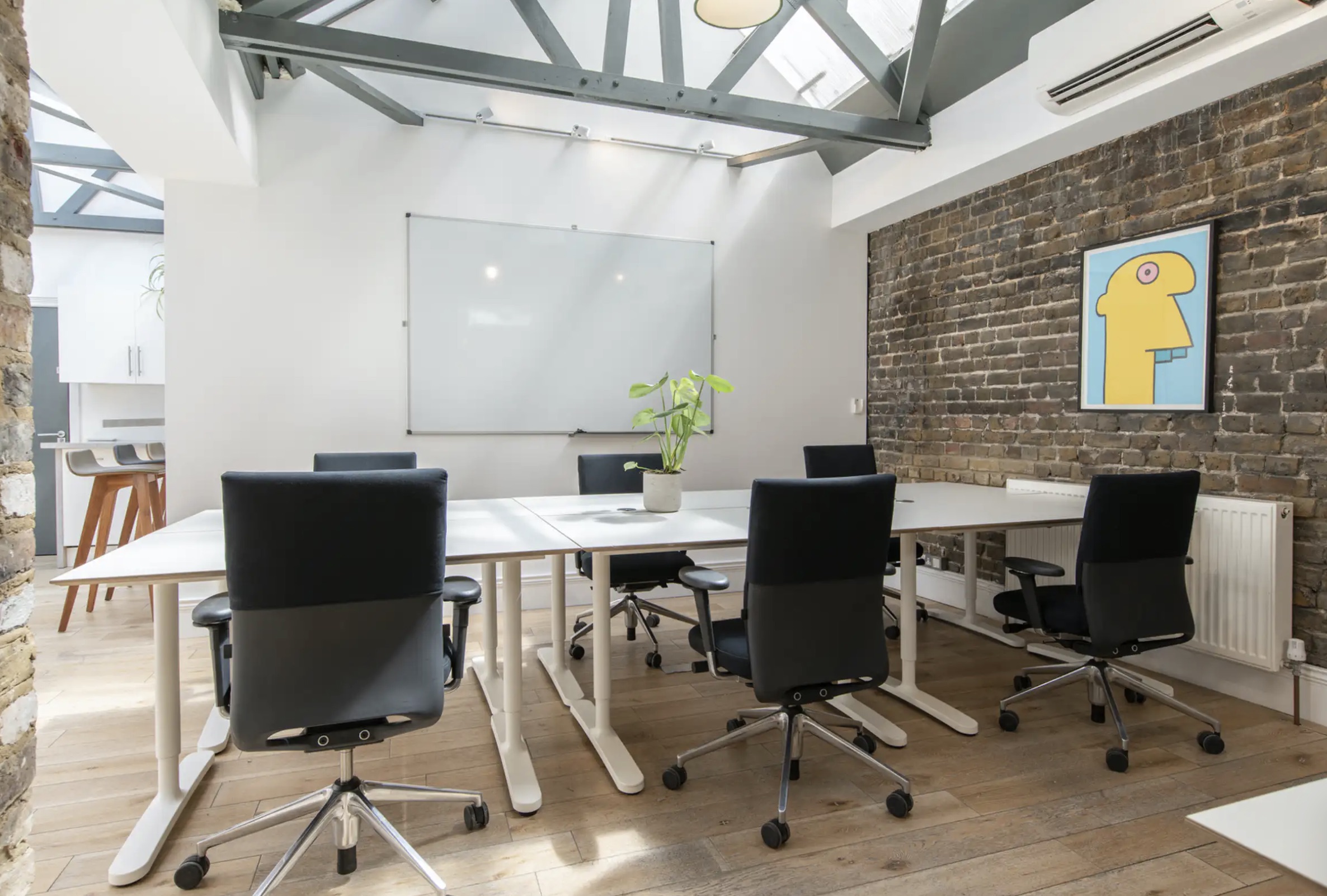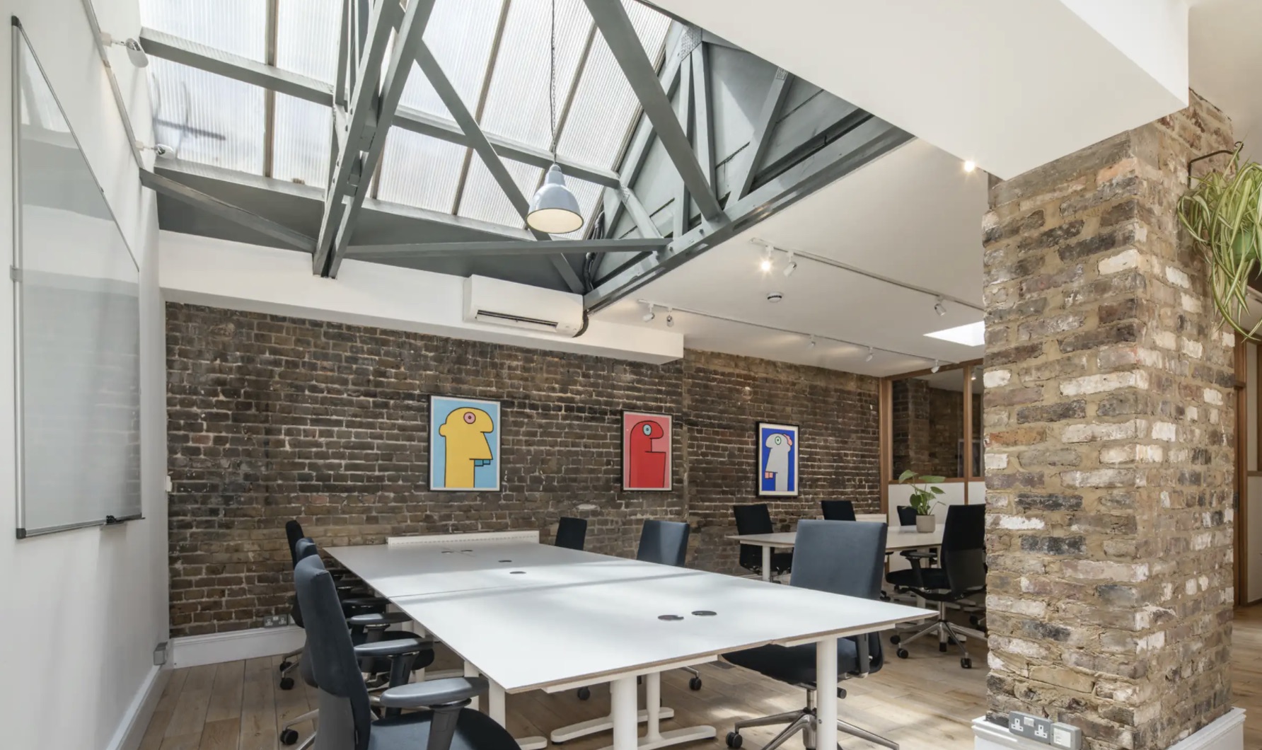Welcome to 189-190 Shoreditch High Street, EC2. This warehouse-style office space combines timber beams, exposed brick walls and Thierry Noir artworks to create a flexible workplace bursting with character.